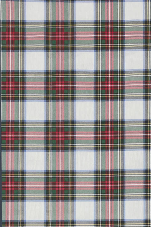 Традиционен шотландски тартан в коледна палитра – червено, зелено, бяло и фино вплетени тъмни линии. Десенът носи усещане за топлина, уют и класическа празнична атмосфера.
